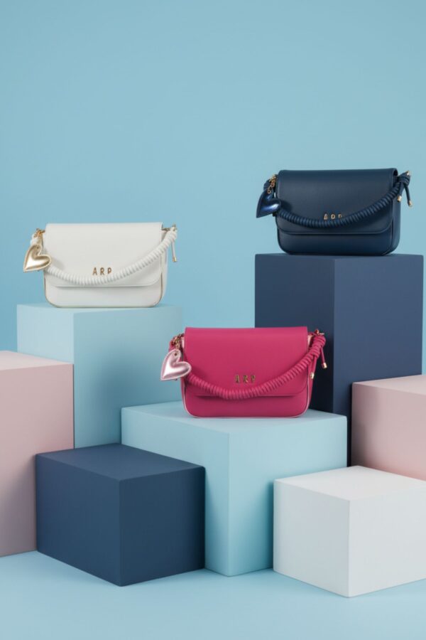 Los detalles metalizados elevan el diseño y le dan un toque chic perfecto para verano. Como guiño final, incorpora un llavero con el icónico corazón, el símbolo más reconocible de Agatha Ruiz de la Prada, que remata la pieza con personalidad y color.