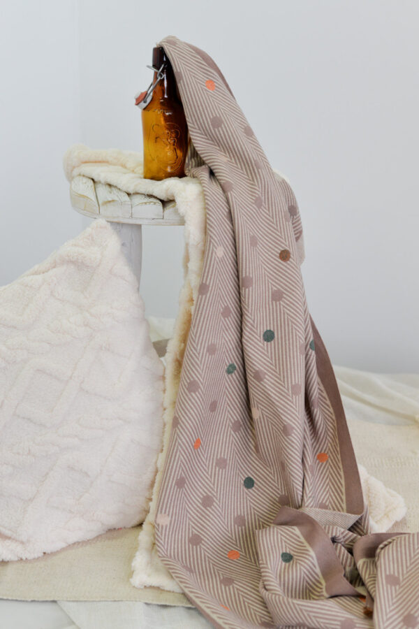Una bufanda cálida, con personalidad y fácil de combinar. Su diseño está formado por topos en distintos tonos, un estampado divertido y elegante que añade un toque distintivo a cualquier look de invierno. El tejido cuenta con buen gramaje, suave y con cuerpo, pensado para abrigar sin resultar pesado.