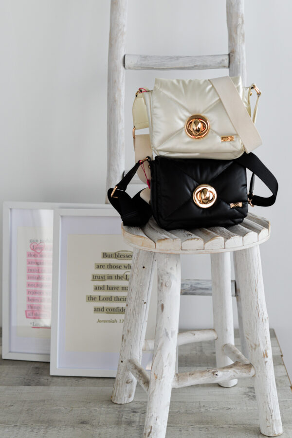 - Bandolera pequeña en material técnico acolchado tipo plumífero