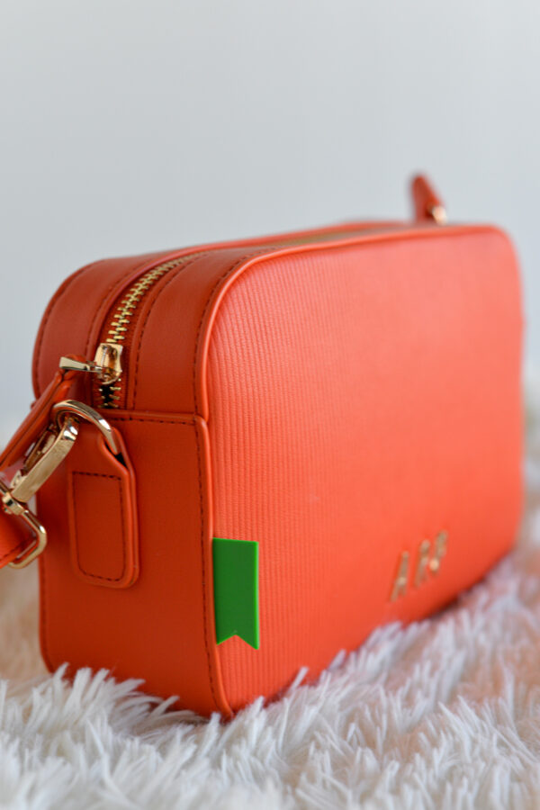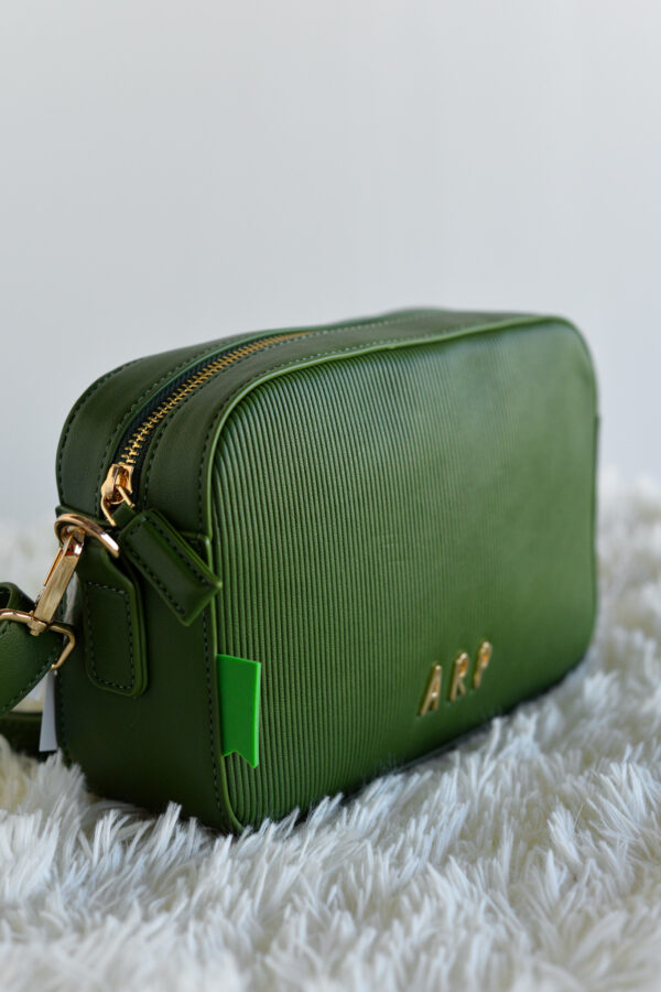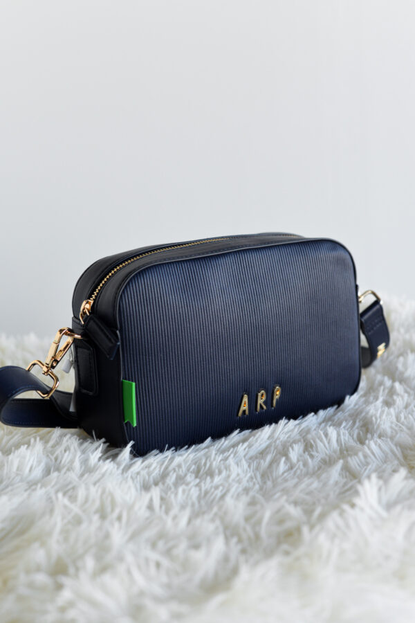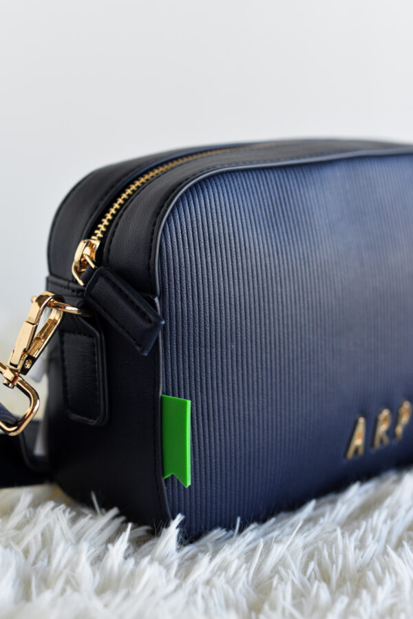 Esta bandolera clásica combina funcionalidad y estilo en un diseño limpio y versátil. Confeccionada en piel vegana grabada con líneas verticales, ofrece un acabado elegante y moderno.