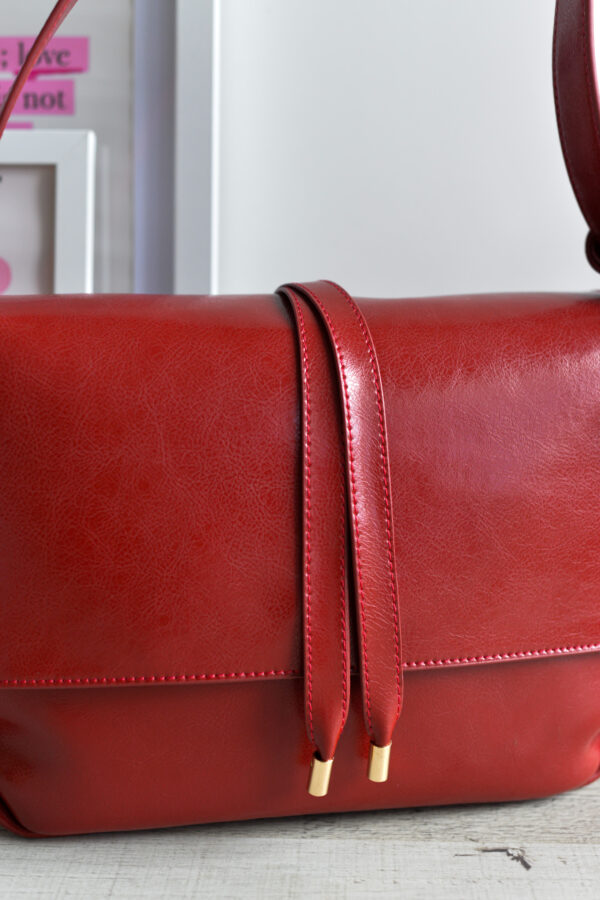 - Bandolera con tapa y cierre de tiras a modo decorativo