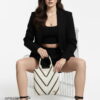 Esta bandolera mediana de Noco, confeccionada en punto estructurado, combina diseño moderno y funcionalidad en un formato práctico y elegante. Su estampado de líneas diagonales a contraste sobre base blanca roto aporta un toque veraniego y urbano, ideal para mujeres que buscan estilo sin sacrificar comodidad.
