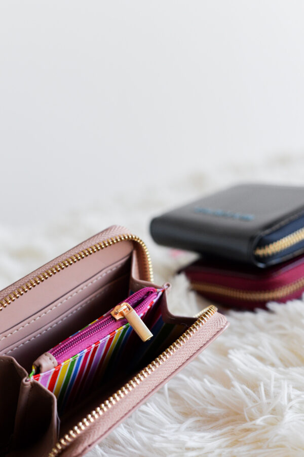 En su interior encontrarás un bolsillo con cremallera que garantiza la seguridad de monedas o pequeños objetos, además de espacio para billetes y tarjetas, manteniendo todo perfectamente organizado.