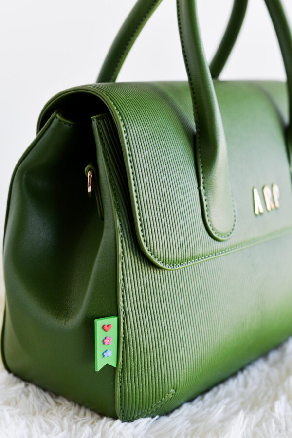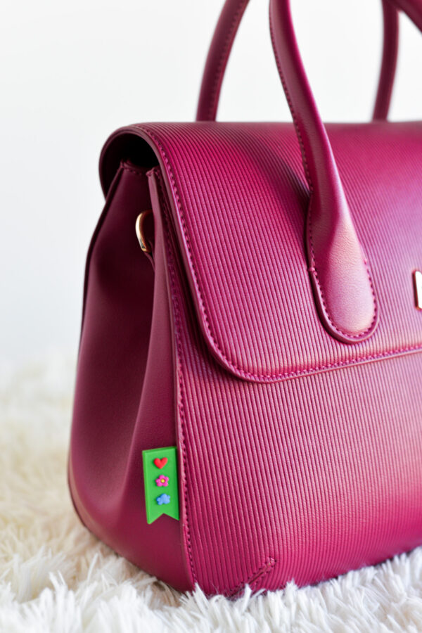 Elegancia y funcionalidad se unen en este bolso de mano con tapa, diseñado en piel vegana grabada con líneas verticales que aportan textura y un acabado sofisticado.