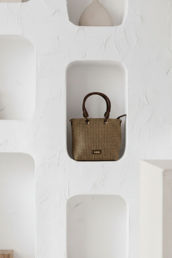 Los detalles en piel vegana de color liso aportan un acabado cuidado y elegante, elevando este bolso pequeño a un accesorio ideal para looks veraniegos, urbanos y desenfadados.