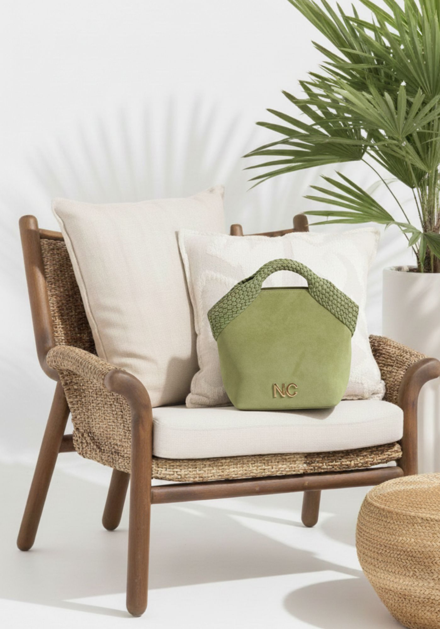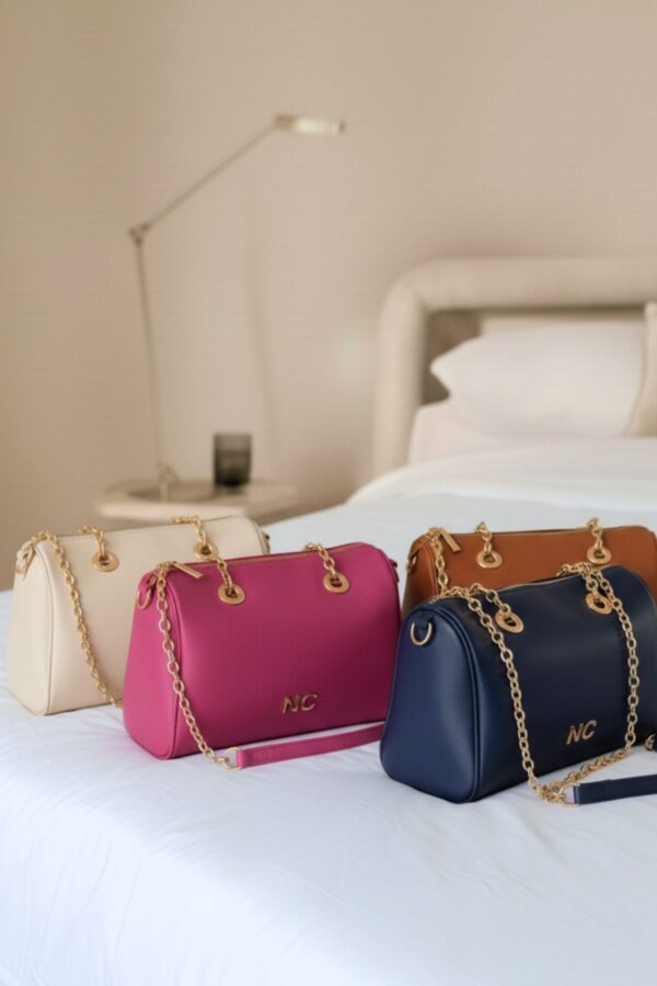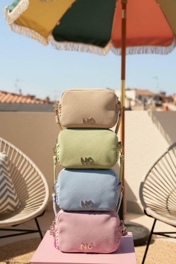 – Detalle trenzado en piel vegana en la parte superior y asa