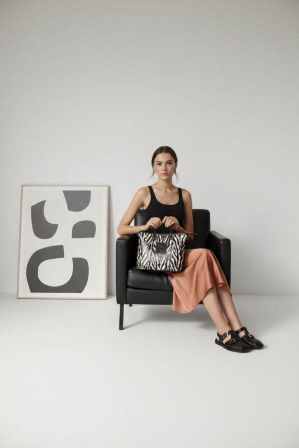 Todos sus detalles están realizados en piel vegana de color negro, aportando un acabado sofisticado y coherente con el estampado. Cuenta con cremallera superior para mayor seguridad e incluye una correa larga que permite llevarlo cómodamente como bandolera cruzada, adaptándose a un uso práctico y versátil. El logo NC de Noco en una de sus esquinas añade el toque distintivo y premium de la marca. Un bolso tote pensado para mujeres que buscan diseño, funcionalidad y carácter en una sola pieza.