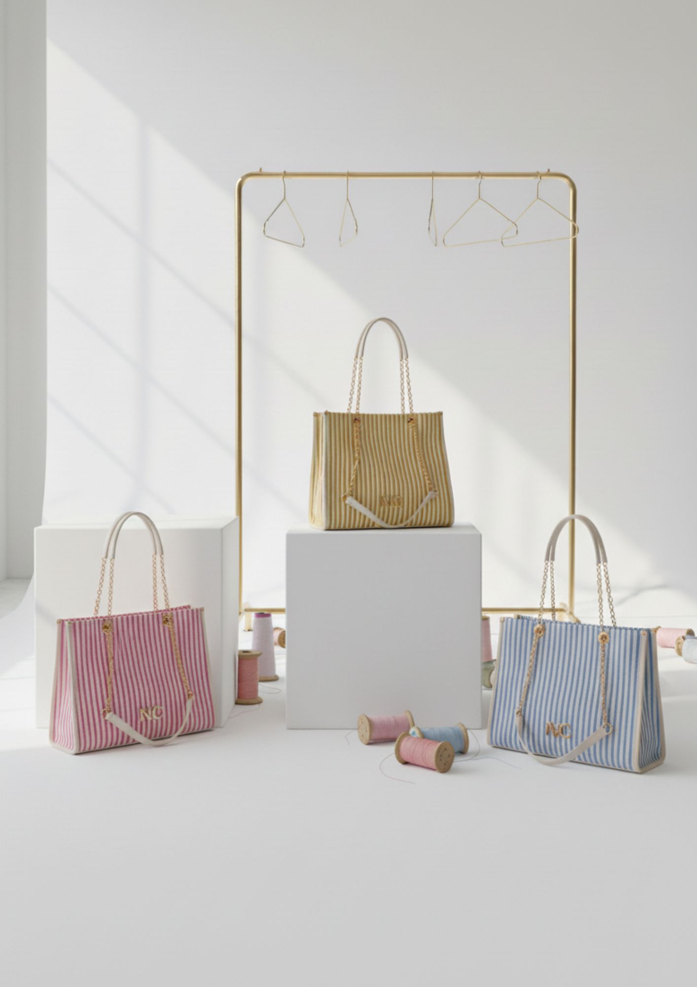 Disponible en tres combinaciones de color —amarillo, rosa y azul—, todas con base beige, para adaptarse a distintos estilos y looks veraniegos.