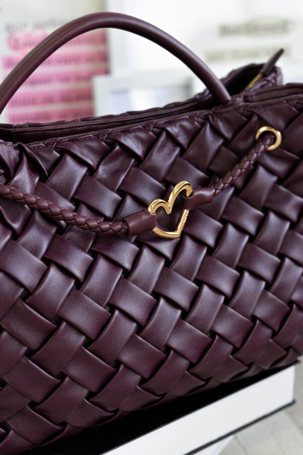 Bolso de mano en piel sintética trenzada destaca por su textura suave y cuidada, perfecta para quienes buscan un accesorio delicado pero con personalidad.