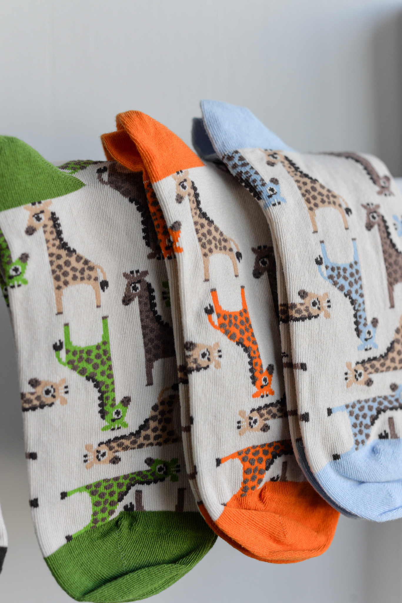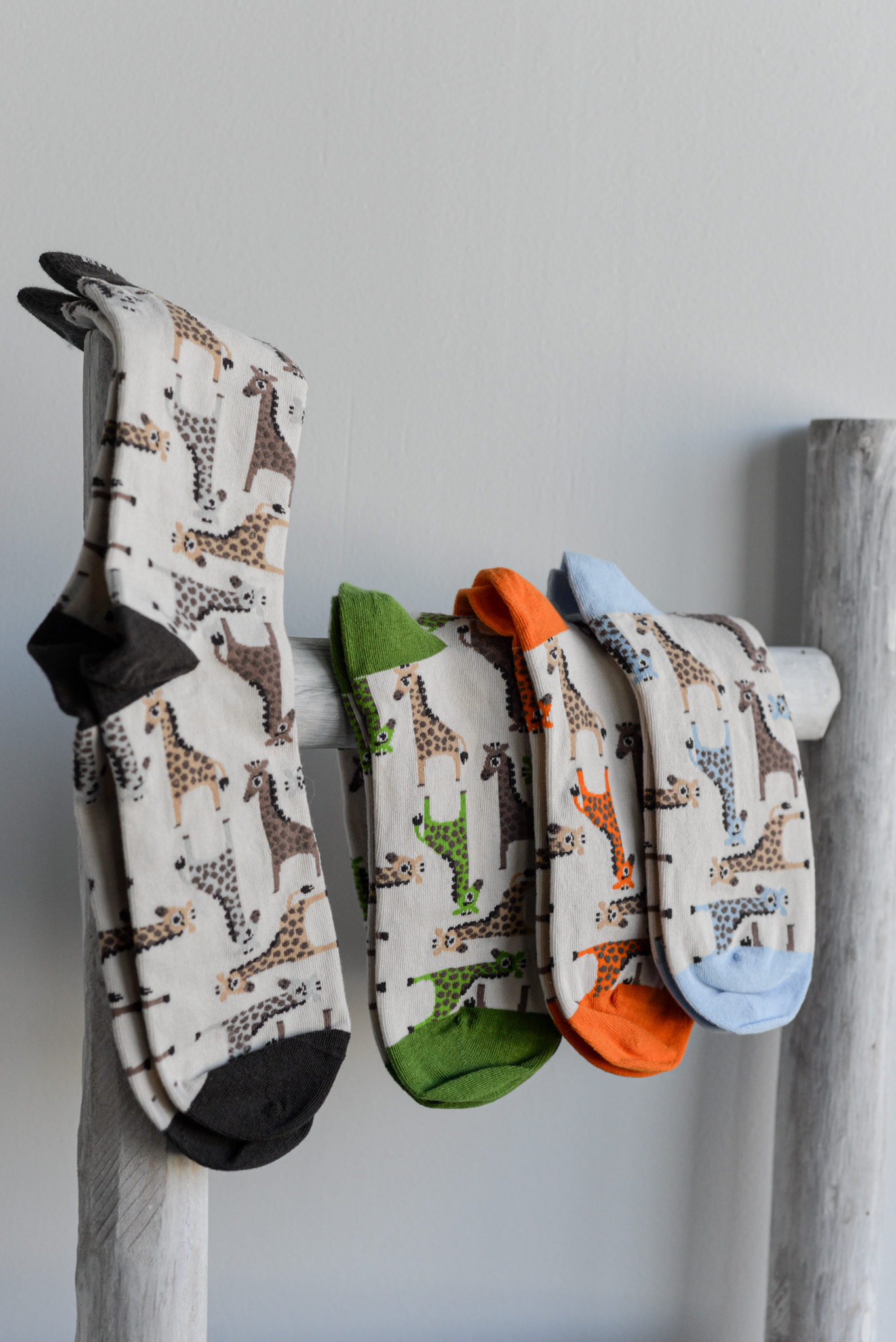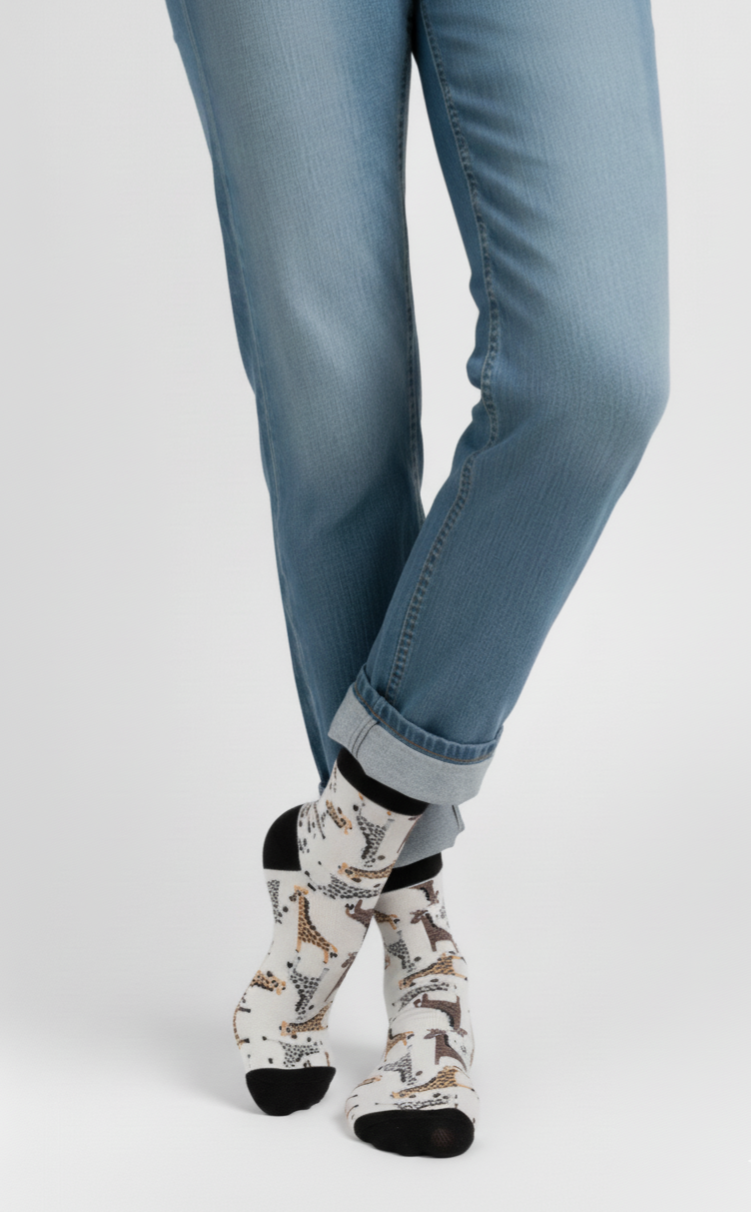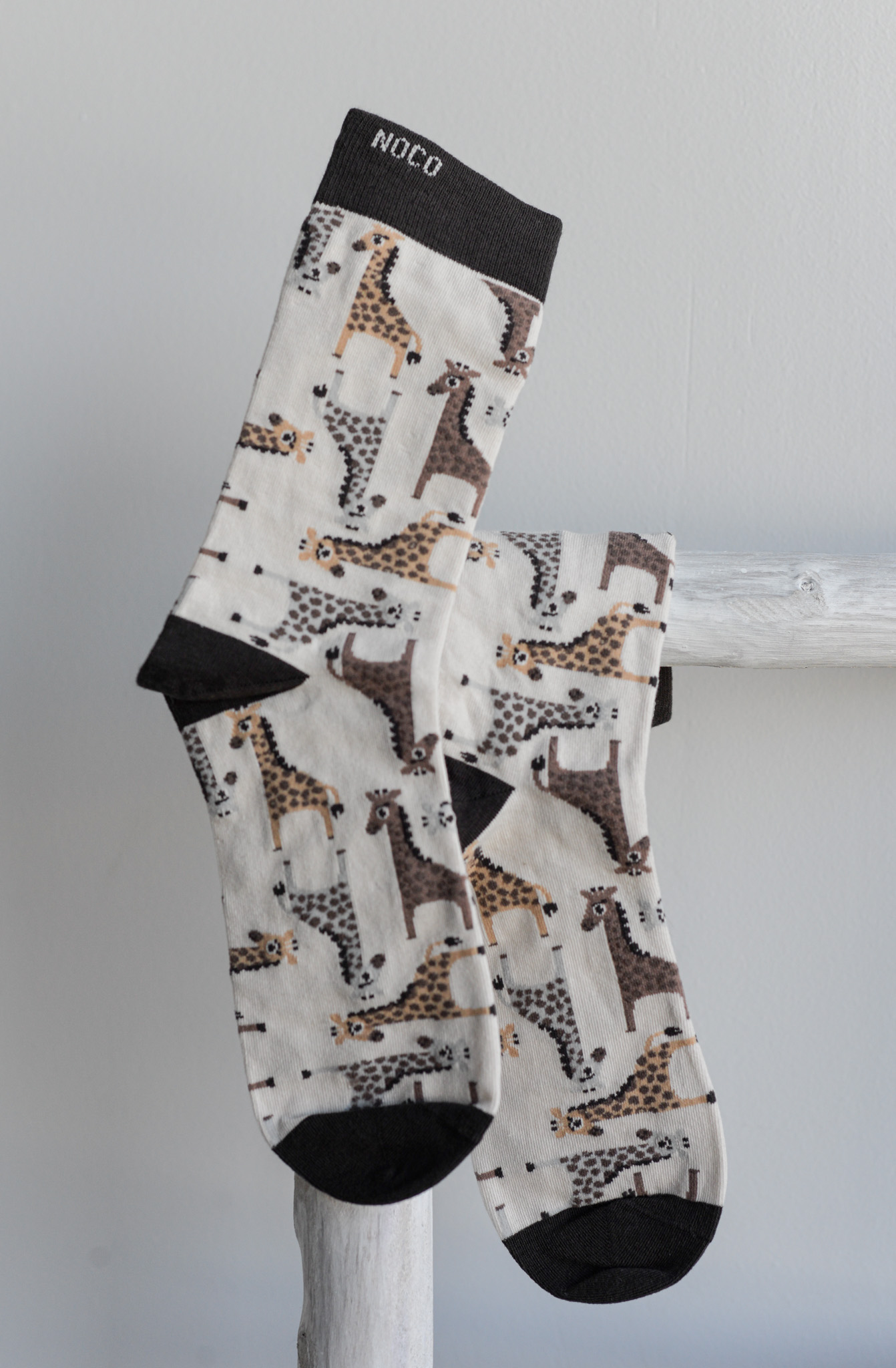 Dale un paso adelante a tu look con los calcetines NOCO, diseñados para quienes buscan estilo sin renunciar al confort. Con estampados originales y detalles en color liso en la puntera, talón y goma superior, estos calcetines unisex combinan diseño moderno con funcionalidad. Estampado de jirafas en distintos tonos de color.