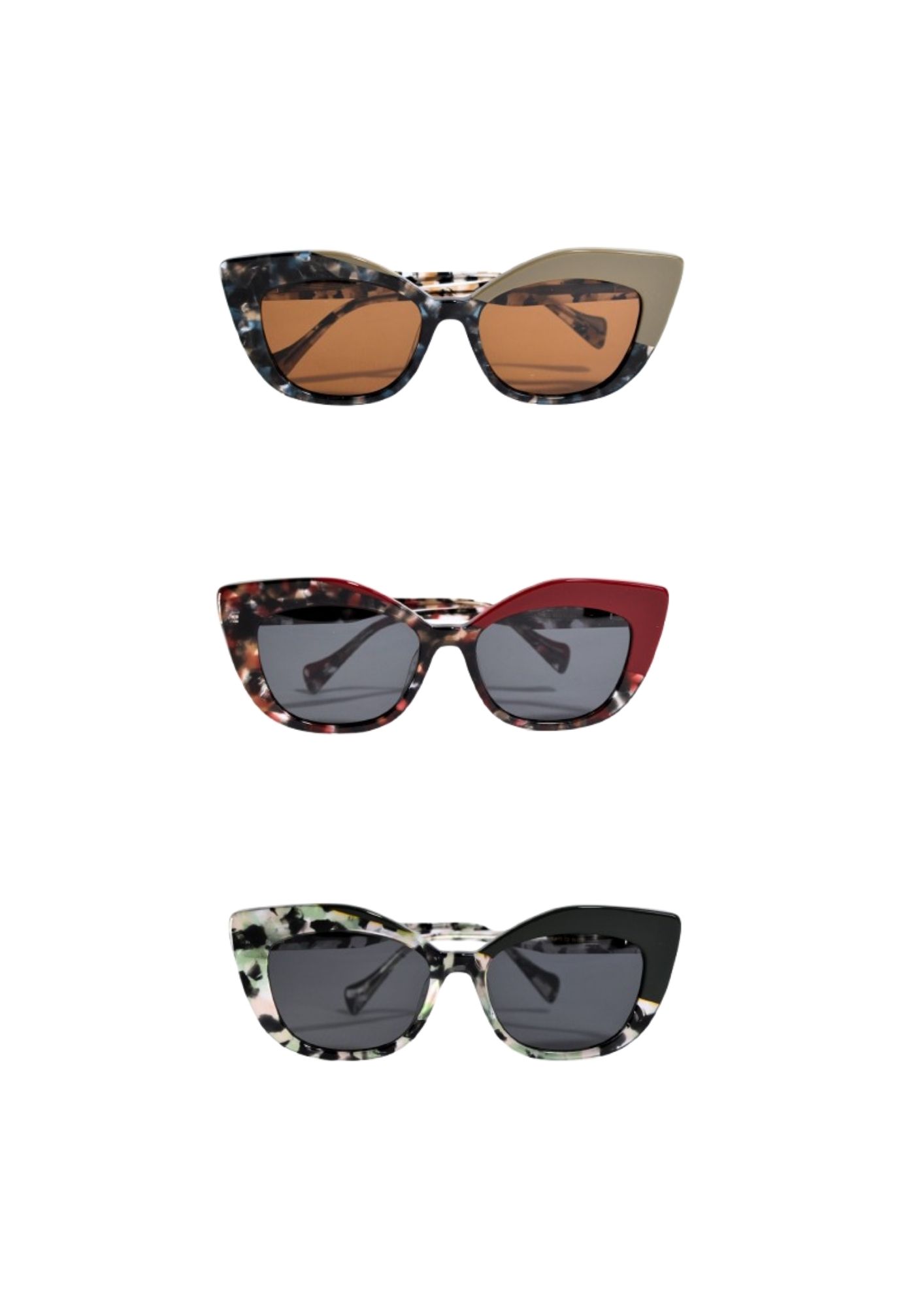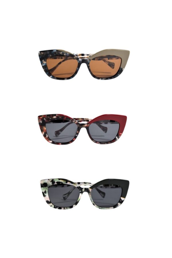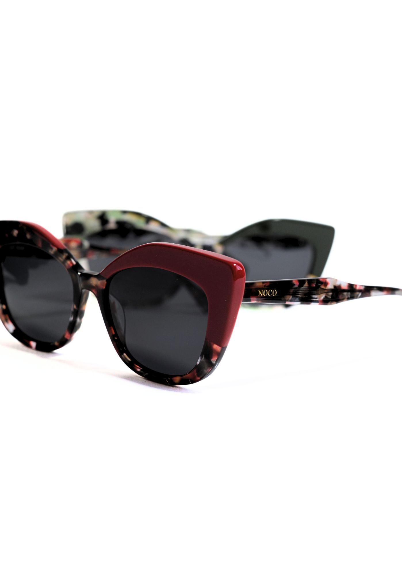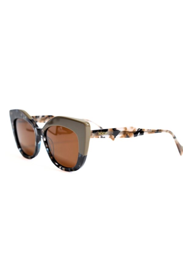 Las gafas de sol Mumbai NOCO presentan un diseño estilo cat eye, que combina elegancia y modernidad. Una esquina en tono liso aporta contraste y define la silueta, mientras que el resto de la montura luce un acabado en carey.