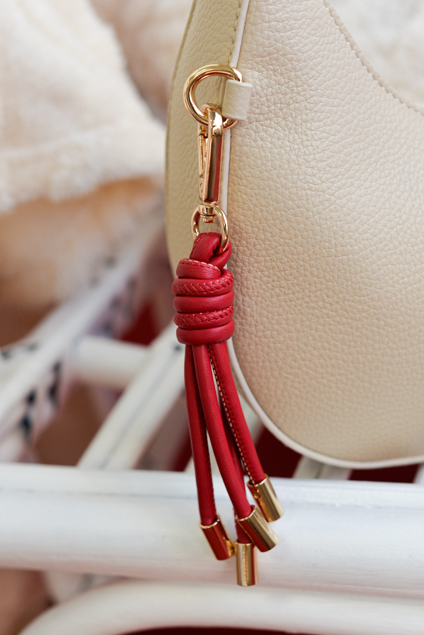 El detalle que marca la diferencia es el llavero de piel sintética roja, que se puede extraer y usar como accesorio independiente, aportando un punto de color vibrante y divertido.