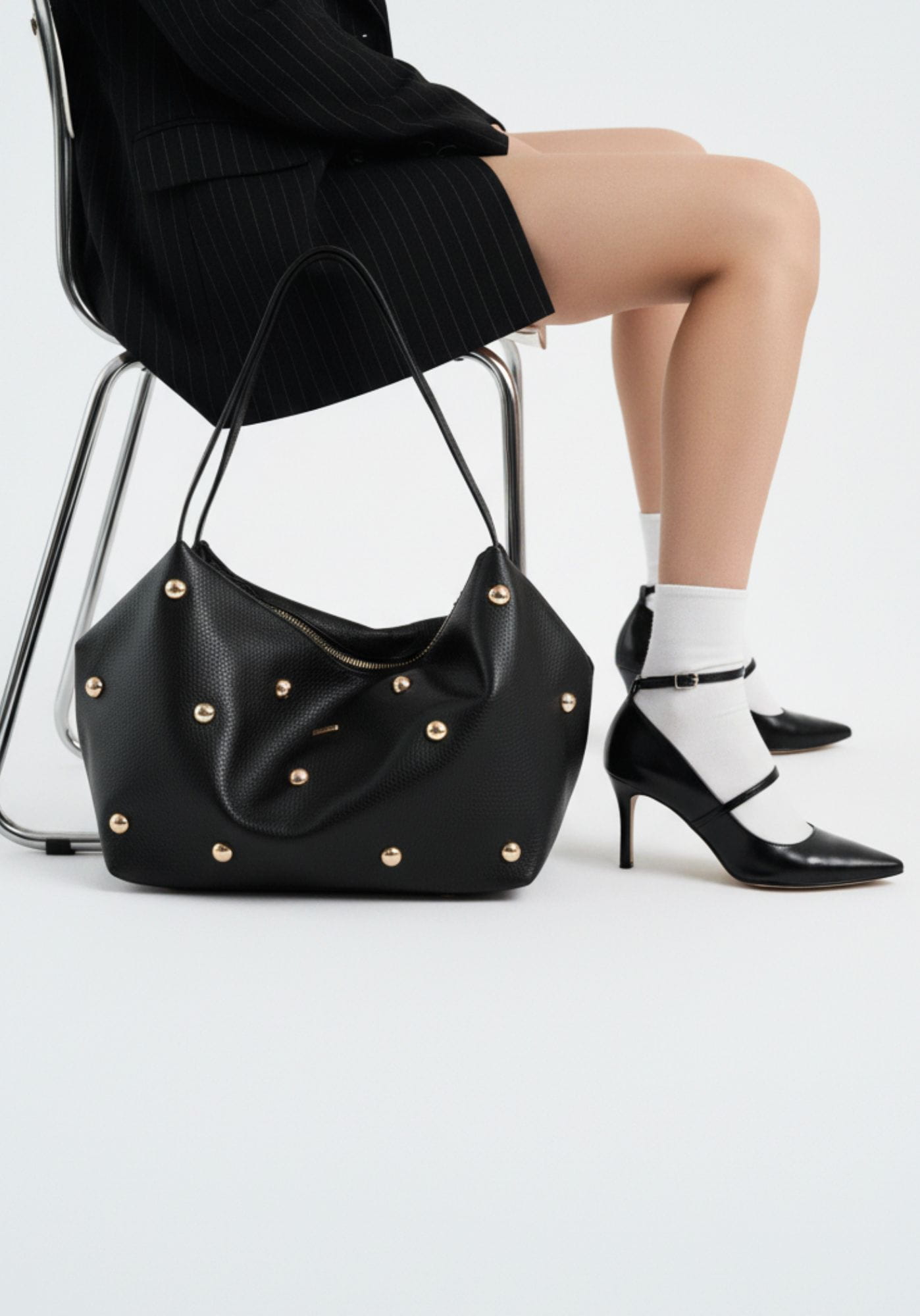 Sus maxi tachuelas doradas aportan un toque llamativo y especial, convirtiéndolo en una pieza protagonista. Cuenta con dos asas superiores para llevarlo cómodamente al hombro o de mano, y una cremallera superior que añade funcionalidad y un punto urbano al diseño. Su interior es súper amplio, ideal para el día a día, viajes cortos o para quienes necesitan llevarlo todo sin renunciar al estilo. Un maxi bolso con carácter, ligero y muy actual, fiel al ADN de Noco.