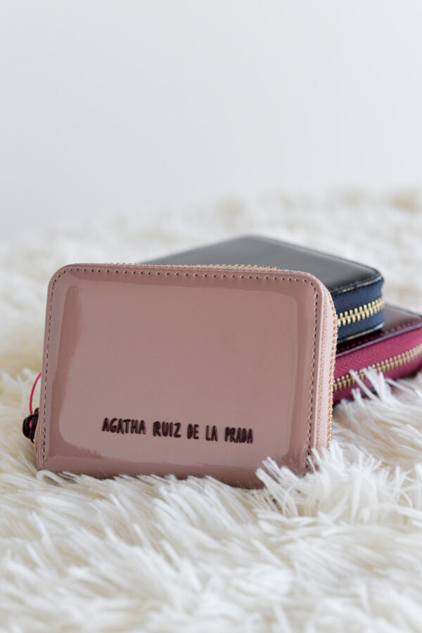 Pequeño, práctico y con mucho estilo. Este monedero de charol es el accesorio ideal para llevar en bolsos pequeños o cuando solo necesitas lo esencial. Su acabado brillante y el logo en contraste le dan un aire moderno y chic, perfecto para completar tu look con un detalle especial.