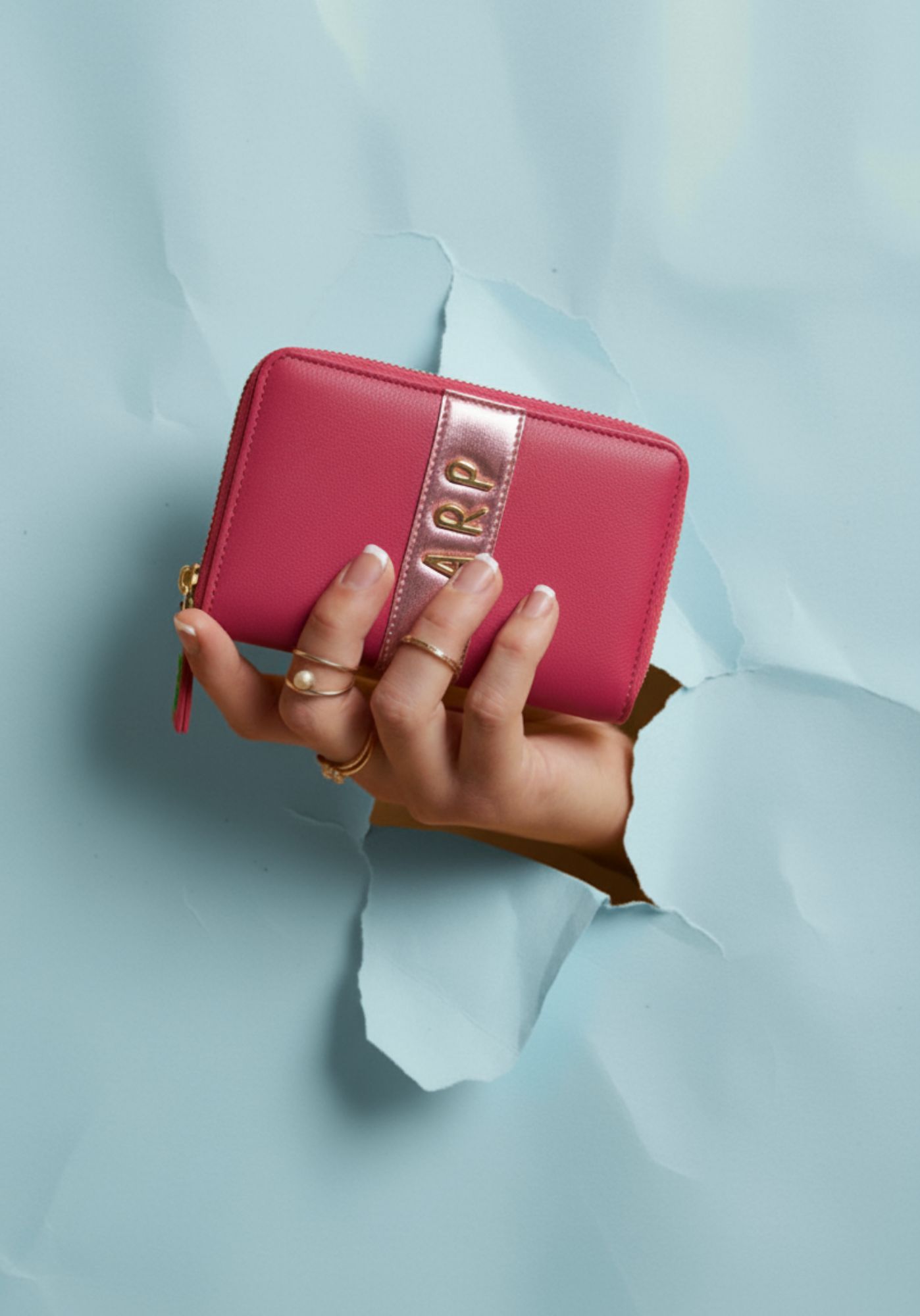 Este monedero mediano de la colección de verano de Agatha Ruiz de la Prada completa la línea con un diseño práctico y con identidad propia. Fabricado en piel sintética lisa, incorpora una línea vertical en material metalizado que aporta un toque moderno y elegante. Sobre esta franja destacan las iniciales ARP, un guiño sutil y reconocible al universo de la marca.