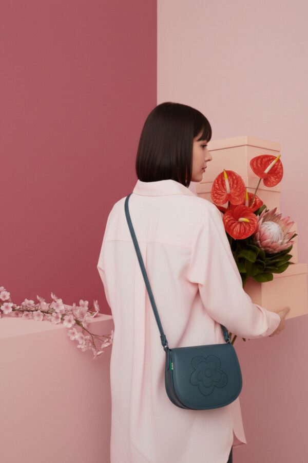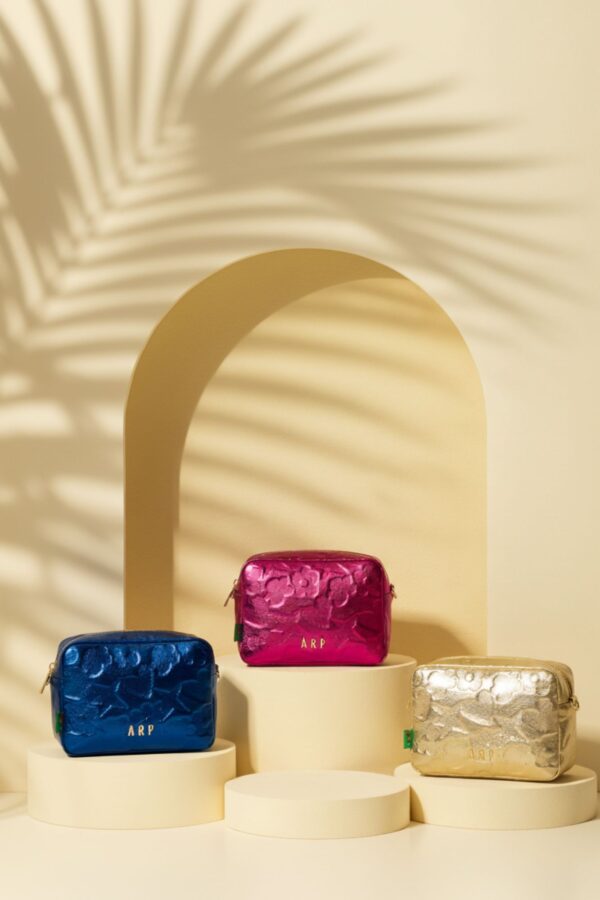 Su diseño incorpora en el frontal el icónico logo de la flor de Agatha Ruiz de la Prada, uno de los símbolos más representativos de la firma, aportando personalidad y un toque distintivo. Su formato práctico lo convierte en una opción ideal tanto como neceser de maquillaje, estuche o bolso organizador.