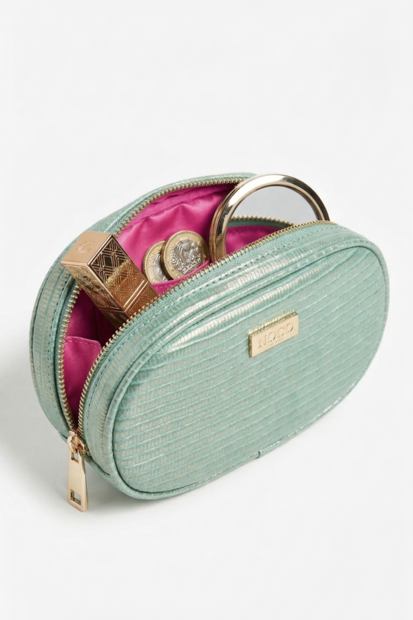 Monedero neceser pequeño para mujer con diseño multifunción, ideal para llevar monedas, maquillaje o incluso como funda para gafas. Fabricado en piel sintética grabada, combina practicidad y estilo en un formato compacto perfecto para el día a día.