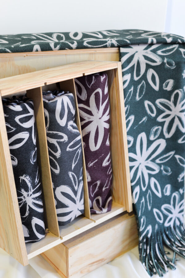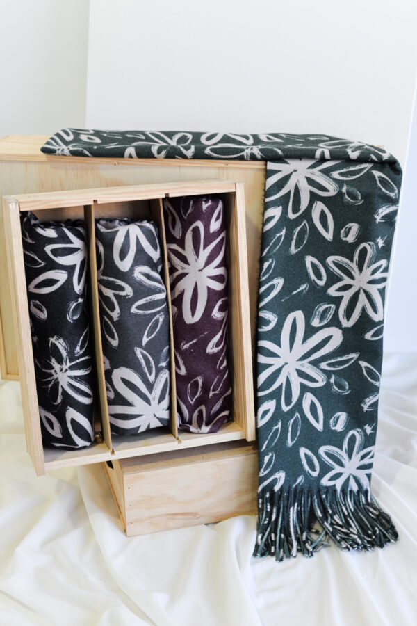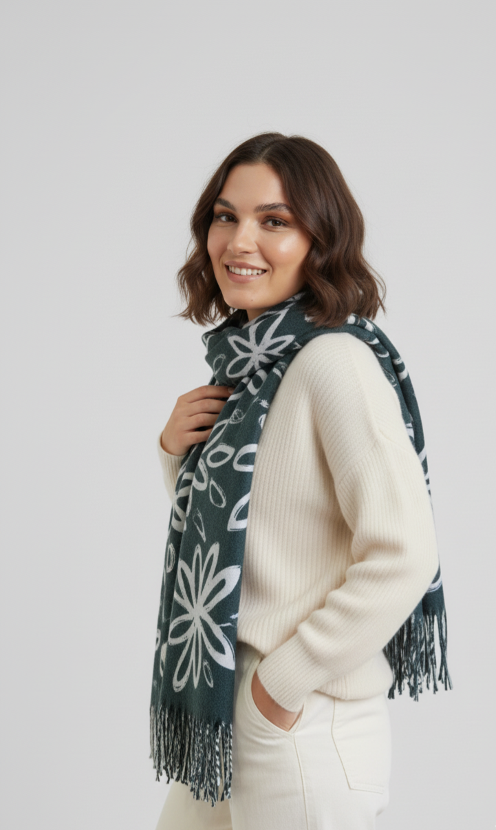 Pashmina reversible diseñada con estampado de margaritas en una de sus partes y por el otro lado en color liso.
