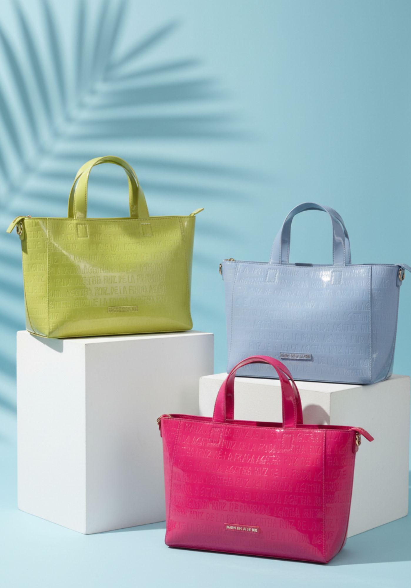 Confeccionada en charol brillante en tonos pastel.