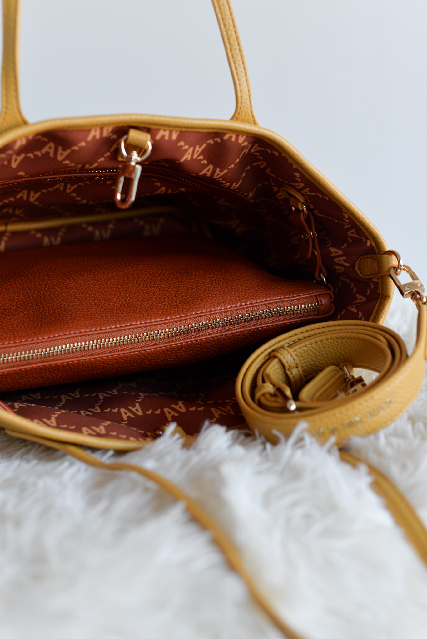 Incluye un neceser interior a contraste que puedes usar por separado, y una correa larga ajustable, perfecta para llevarlo como bolso bandolera. En resumen: un bolso versátil, funcional y con mucho estilo que te resuelve el día a día con un solo gesto.